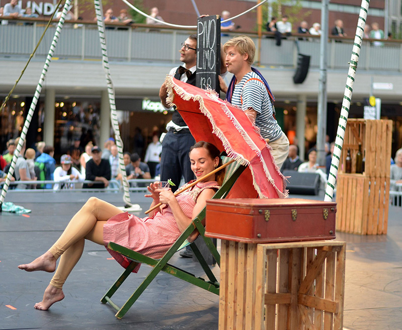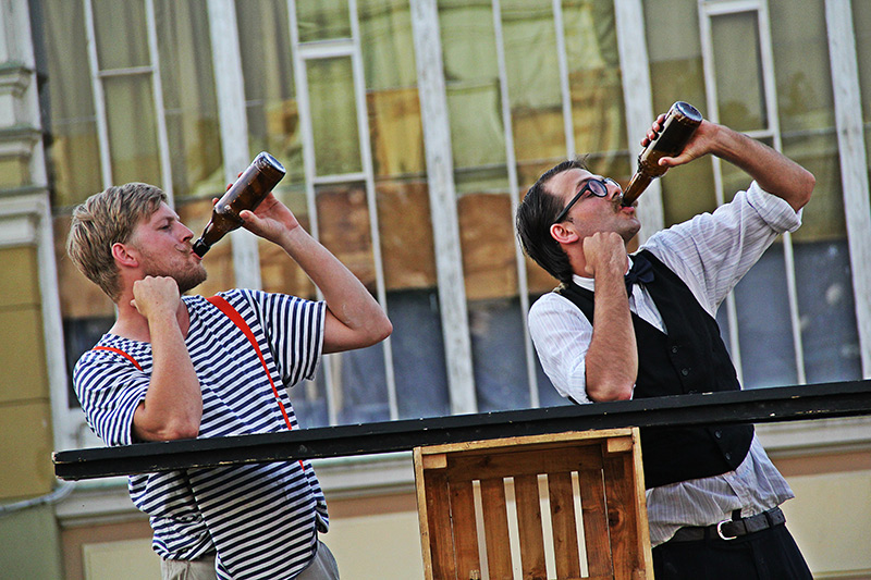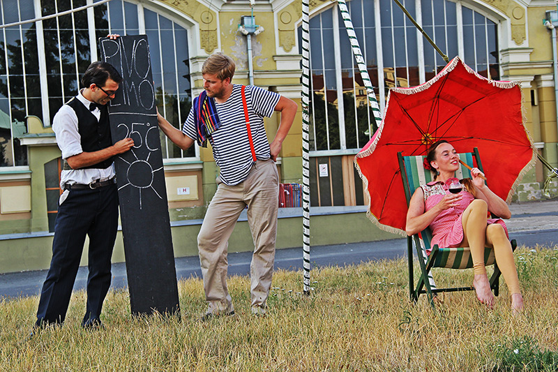 Pohybově – cirkusová humoreska na motivy Vančurova Rozmarného léta v režii Veroniky Riedlbauchové. Nechte na sebe dýchnouti atmosféru časů minulých, kdy muži pečovali o své zdraví a tělesnou čistotu v říčních lázních. Nerobíce věcí užitkových, trávili i seberozmarnější léta v tvůrčí zahálce, rozmlouvajíce nad tématy světotvornými. Ve chvíli, kdy na prkna plovárenská zavítá dívka povahy nadmíru jemné, rozbíhá se děj a není v ničí moci, aby jej zadržel. K ďasu!